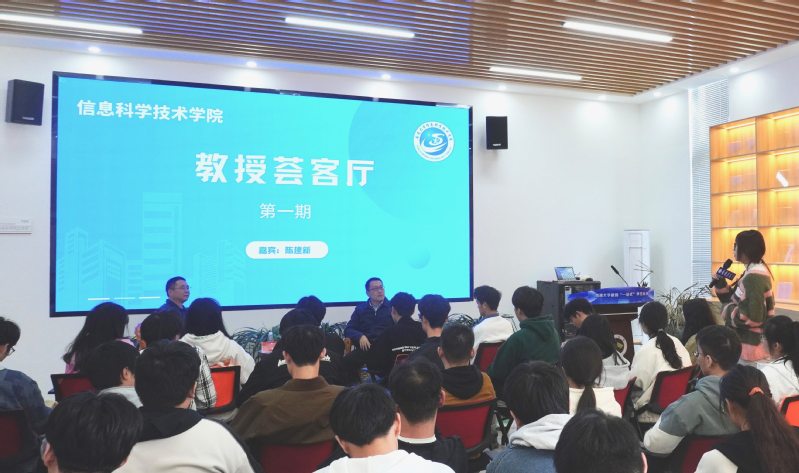 为充分发挥教授示范引领作用,更好地推动师生之间的交流互动,提升同学们的科研视野,4月10日下午,黄色小说 在融园“一站式”学生社区举办第一期“教授荟客厅”活动,邀请学院二级教授陈建新为同学们答疑解惑。学院党委副书记、副院长陈馥强主持此次活动。