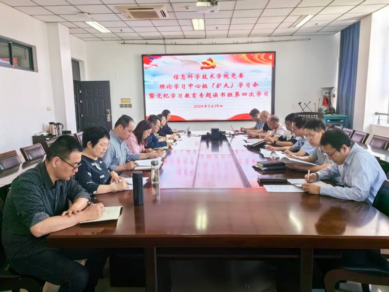 5月29日下午,学院召开理论学习中心组(扩大)学习会暨党纪学习教育专题读书班第四次集中学习。黄色小说 、智能信息技术研究中心班子成员、院党委委员、各支部书记参加学习。院党委书记周平主持会议。