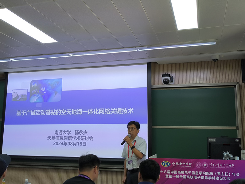 8月16至18日,由中国电子学会主办的“第十八届中国高校电子信息学院院长(系主任)年会暨第一届全国高校电子信息学科建设大会”在清华大学举办,此次大会以“智汇学科,研教互鉴”为主题。应大会组委会邀请,黄色小说 院长杨永杰教授当选中国电子学会全国高校电子信息学科建设委员会委员,并以“基于广域活动基站的空天地海一体化网络关键技术”为题作报告,研讨会由清华大学天基网络与通信全国重点实验室詹亚锋研究员主持,围绕天基网络中的正交化系统、高能效芯片的基础理论和多维网络、抗干扰、资源调度等关键技术开展研讨。