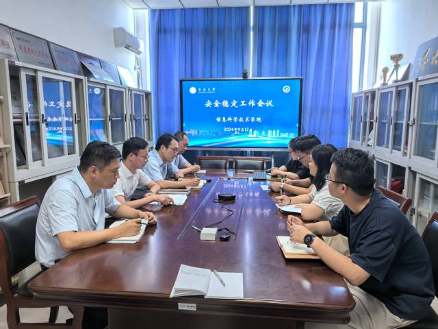 9月12日下午,学院召开安全稳定工作会议,安排部署近期学院安全工作。院党委副书记、副院长陈馥强,副院长李洪均,系、室、实验中心负责人,全体辅导员参加会议。院党委书记周平主持会议。