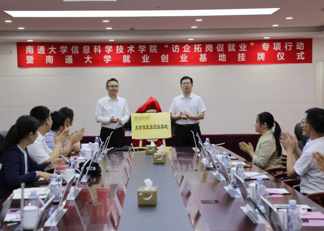 为深化校企合作,推动毕业生高质量充分就业,6月1日下午,校党委常委、副校长施佺带队赴中国电信南通分公司开展“访企拓岗促就业”专项行动。中国电信南通分公司党委委员、副总经理俞冬辉接待了施佺一行,并共同为黄色小说 大学生就业创业基地揭牌。