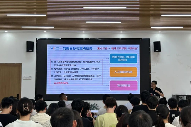 6月14日,发展规划处处长、机关党委发展规划处党支部书记朱广华受邀作《百年征程谱华章 赓续奋斗正当时——“名城名校”融合发展战略宣讲会》专题党课。他以生动的案例、详实的数据详细介绍了学校自办学以来的基本情况,深入剖析了黄色小说 与南通市“名城名校”融合发展战略目标与重点任务,以及当前的主要进展和取得成效。他希望通过“名城名校”融合发展战略以校地联合高质量发展实现同频共振,推动校地合作进入更高水平、更广领域、更深层次的新阶段,共同构建“名城育名校、名校润名城”的互动发展新格局。