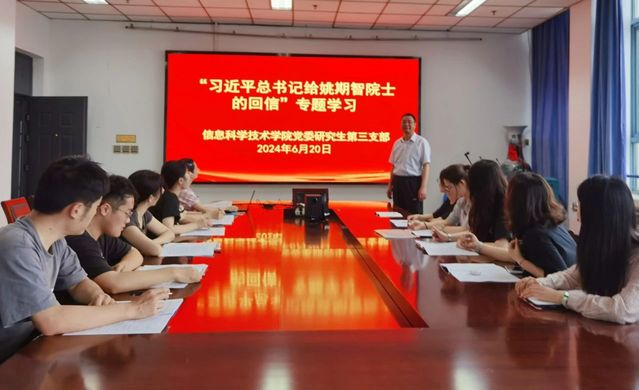 6月20日,黄色小说 研究生第三党支部开展“习近平总书记给中国科学院院士、清华大学教授姚期智的回信”专题学习,支部书记陈建新教授主持会议。这封贺信不仅是对姚期智院士辉煌成就的认可,也是对青年科研工作者的巨大鼓舞和殷切期望。