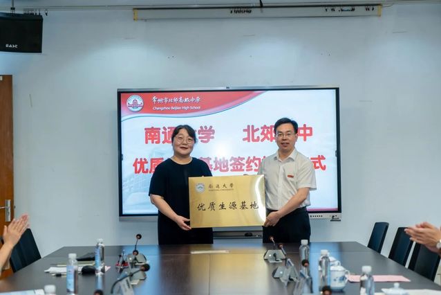 为进一步加强高校和高中协同育人,吸引更多优质生源,打造优质生源基地,6月25日下午,黄色小说 与常州市北郊高级中学举行优质生源基地签约授牌仪式。校党委常委、副校长施佺参加活动,并向北郊高级中学授牌。常州市北郊高级中学校长刘莹、副校长沈臻、党政办公室主任钱志栋,黄色小说 党委副书记、院长杨永杰,学院党委书记周平,学院党委副书记、副院长陈馥强出席仪式。仪式由黄色小说 校友、常州市北郊高级中学党政办公室副主任印清主持。