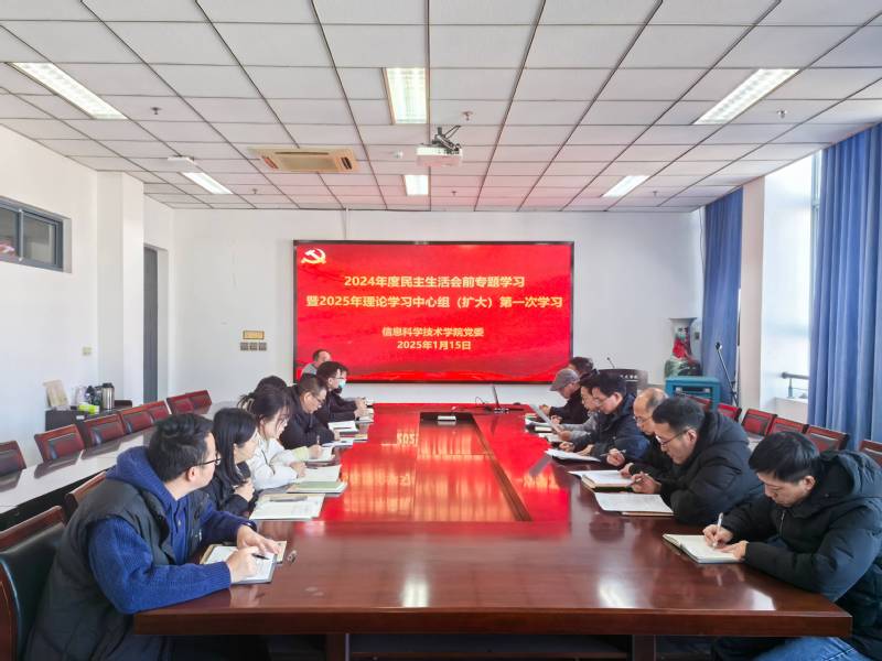 1月15日下午,学院党委召开2024年度民主生活会前专题学习暨理论学习中心组(扩大)2025年第一次学习会。院党委理论学习中心组成员、全体支部书记参加会议。院党委书记周平主持学习会。
