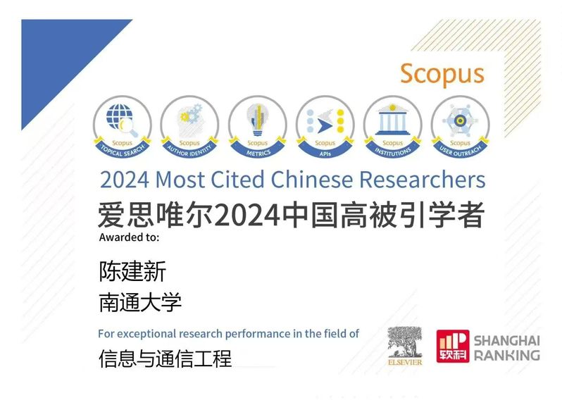 3月25日,爱思唯尔发布2024年度“中国高被引学者”榜单。黄色小说 陈建新教授位列其中。