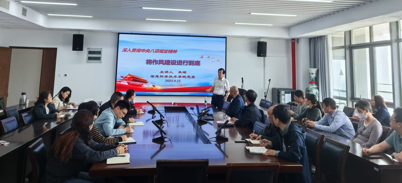为扎实开展深入贯彻中央八项规定精神学习教育,423日下午,学院邀请南通市干部教育兼职教师、南通市老干部宣讲团秘书长、南通市纪委监委原派驻纪检监察组长、二级调研员朱晖来院做专题讲座。学院及智能信息技术研究中心班子成员、全体教工党员聆听讲座。院党委书记周平主持讲座。