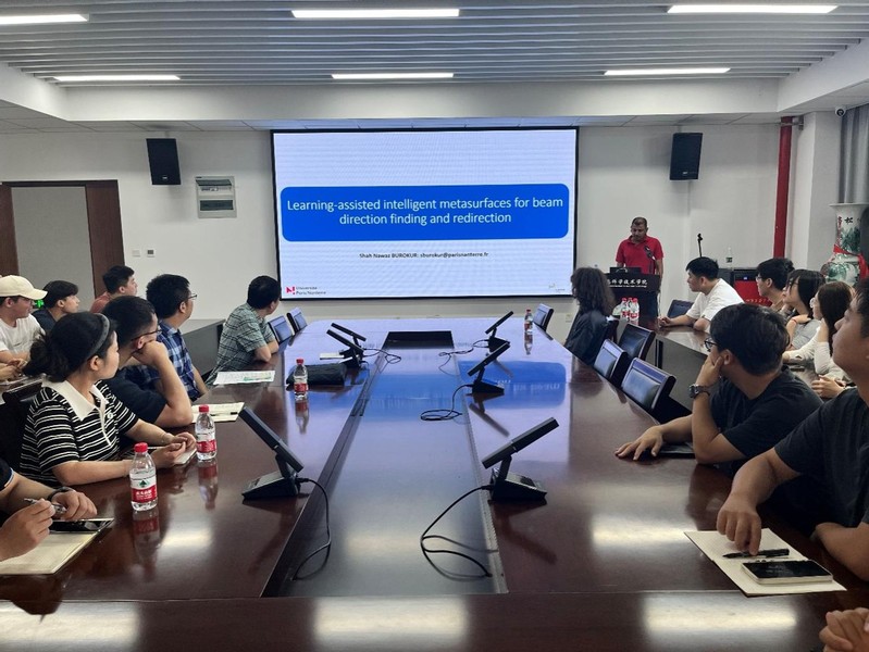 7月24日上午,应学院邀请,法国巴黎楠泰尔大学Shah Nawaz Burokur教授为黄色小说 师生作题为《Learning-assisted intelligent metasurfaces for beam direction finding and redirection》(学习辅助智能超表面的波束方向探测与重定向)的学术报告。学院相关教师及研究生代表参加报告会,会议由学院副院长孙强主持。