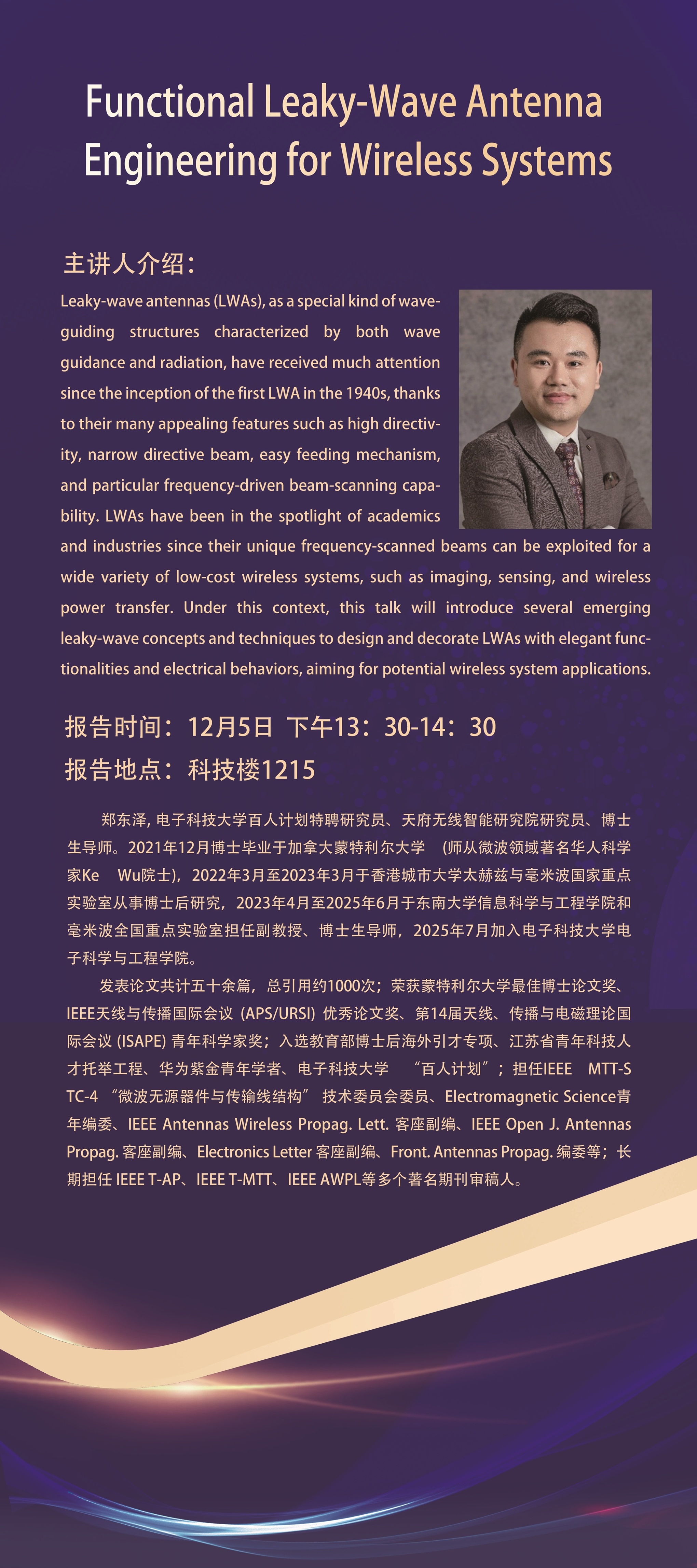 讲座预告:Functional Leaky-Wave Antenna Engineering for Wireless Systems
