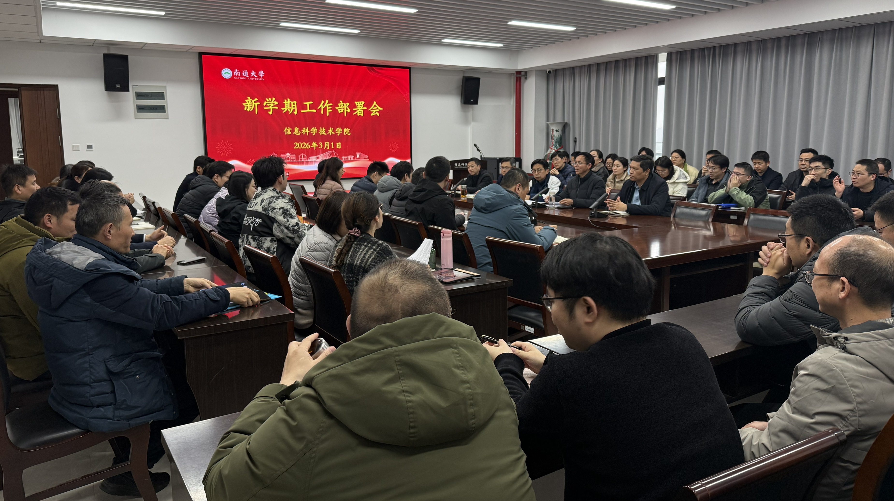 3月1日下午,黄色小说 召开新学期工作部署会,传达学校第五届教职工代表大会、第四届工会会员代表大会第二次会议精神,总结2025年工作,部署2026年重点任务。学院全体教职工参加会议,院党委书记周平主持会议。