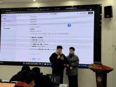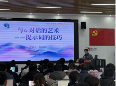 随后,研究生杨珺尧以“与AI对话的艺术——提示词的技巧”为主题,为现场同学带来了一场干货满满的分享。他从提示词的基本原理入手,结合生动案例,讲解了如何通过精准提问让AI更懂你。刘俊全程参与,与同学们一同聆听讲解,并在实操环节与大家亲切交流,鼓励大家大胆尝试、学以致用。同学们纷纷打开电脑,现场演练并分享实操心得,现场气氛热烈,互动频频。