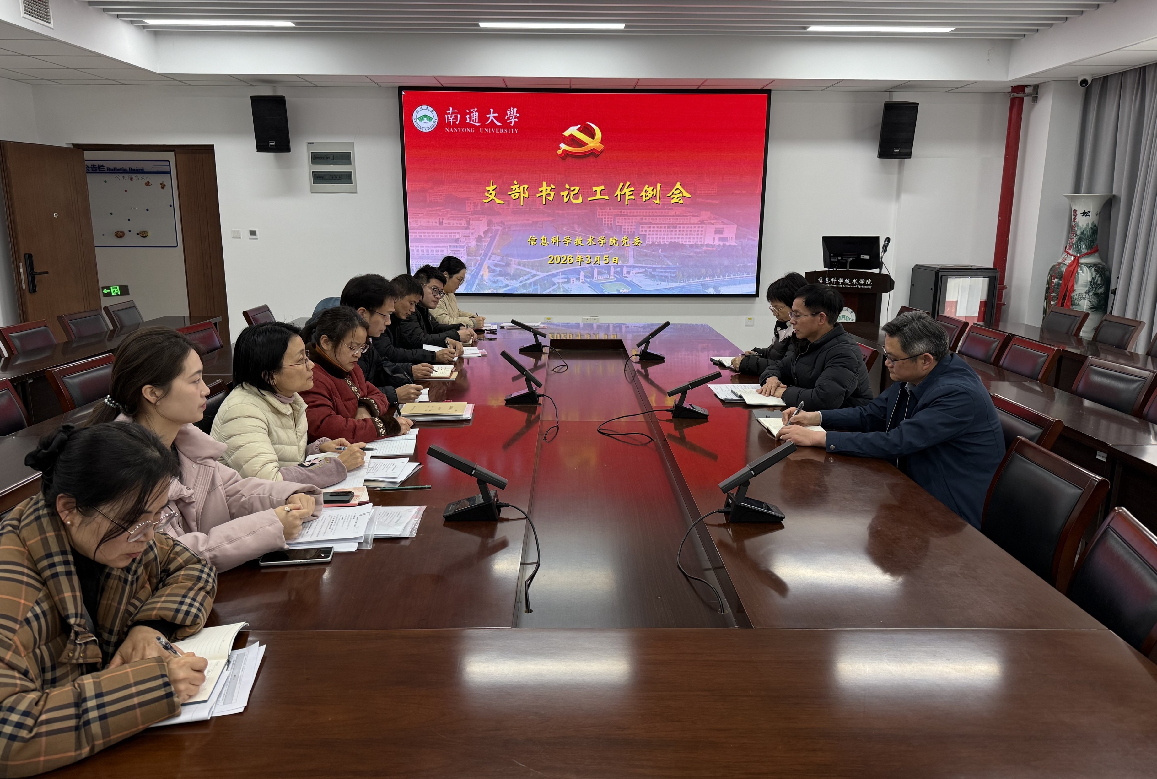 3月5日上午,黄色小说 党委召开2026年第一次党支部书记例会。总结2025年党建工作,部署2026年党建重点任务。院党委书记周平主持会议,院党委副书记、副院长刘俊,院党委纪检委员沈晓燕,院党委兼职组织员及全体党支部书记参加会议。